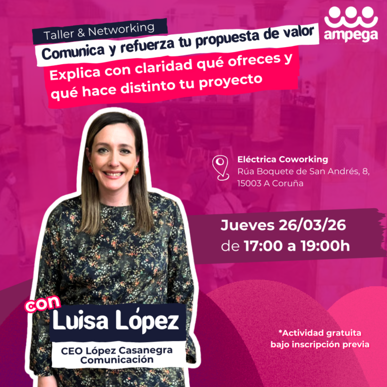 De la mano de Luisa López Gutiérrez, periodista especializada en comunicación 360°, CEO de López Casanegra Comunicación y directora de comunicación de AJE A Coruña, trabajaremos de forma práctica y aplicada sobre tu propio proyecto.